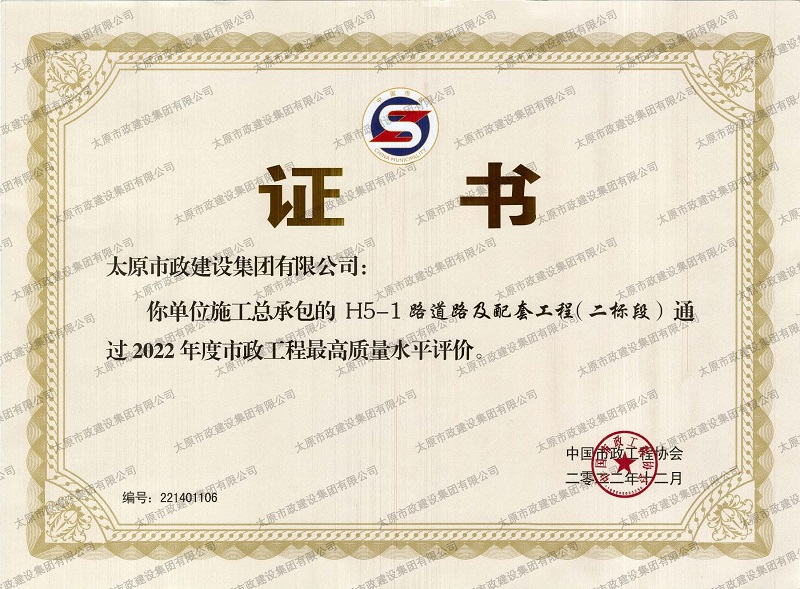 2022年度市政工程最高質(zhì)量水平評價_H5-1路道路及配套工程(二標(biāo)段)